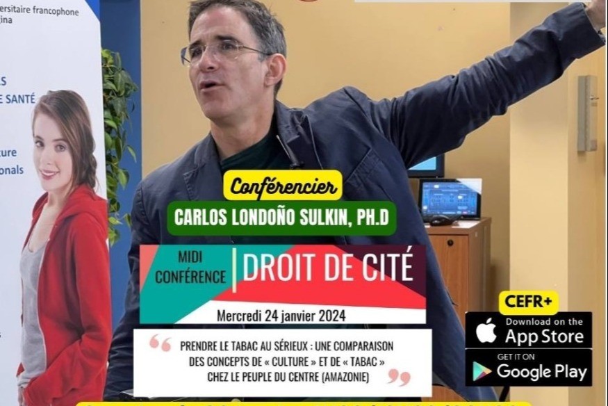 La série des midi-conférences Droit de Cité met en valeur les recherches des francophones et francophiles de la Saskatchewan. Pour la conférence du mercredi 24 janvier 2024, elle est animée par le Dr Carlos Londono Sulkin et à pour thème Prendre le tabac au sérieux : une comparaison des concepts de culture et de tabac chez le peuple du centre (Amazonie).