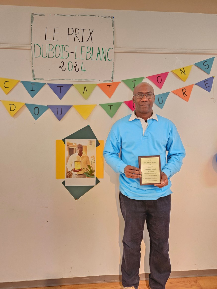 Directeur de l'école Boréale à Ponteix, Amadou Touré a récemment reçu le prix Dubois-Leblanc qui reconnait la qualité de son engagement au niveau du perfectionnement professionnel dans les écoles du CÉF. Diplômé d'une école supérieure à Bamako au Mali, de l'Université Paris-8 Vincennes en France et de l'Université d'Ottawa, il est arrivé en Saskatchewan en 2012 comme orthopédagogue.